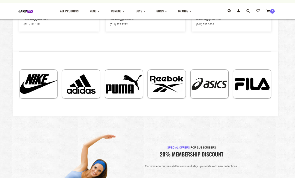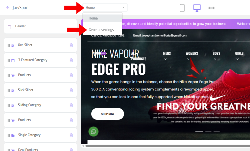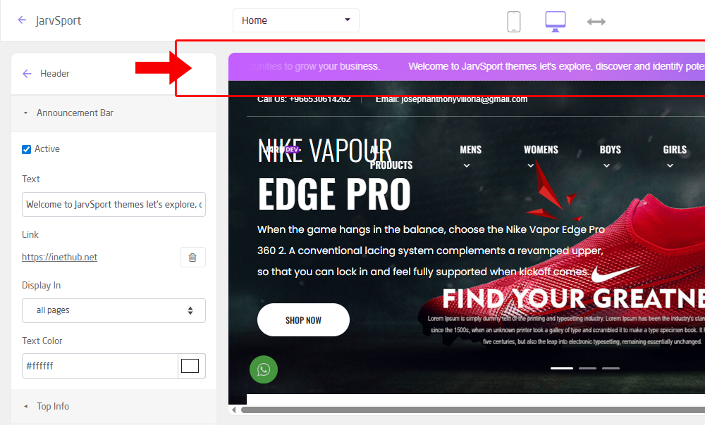 Top Info | Activate the top info header it will show your contact number, email and social media accounts.